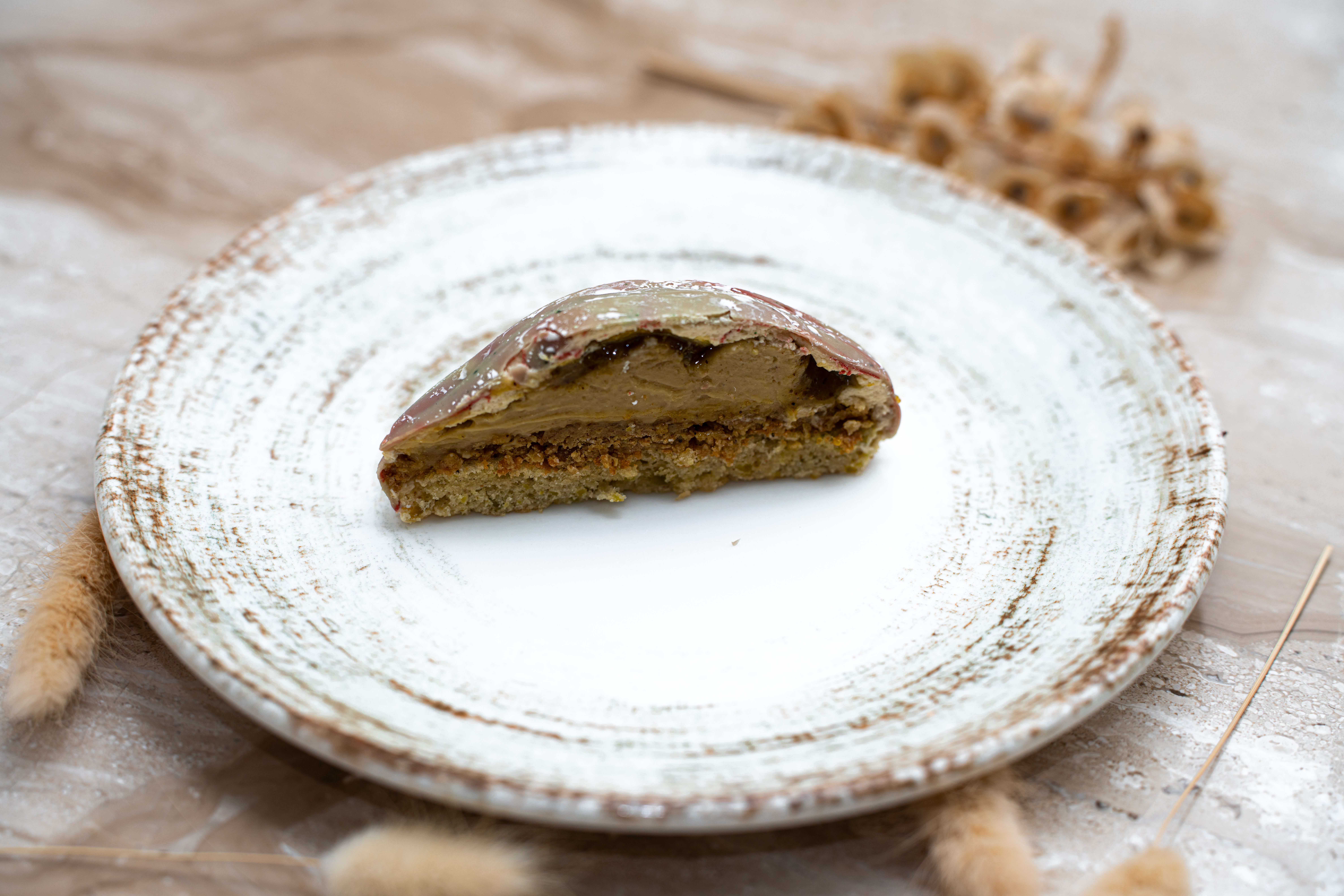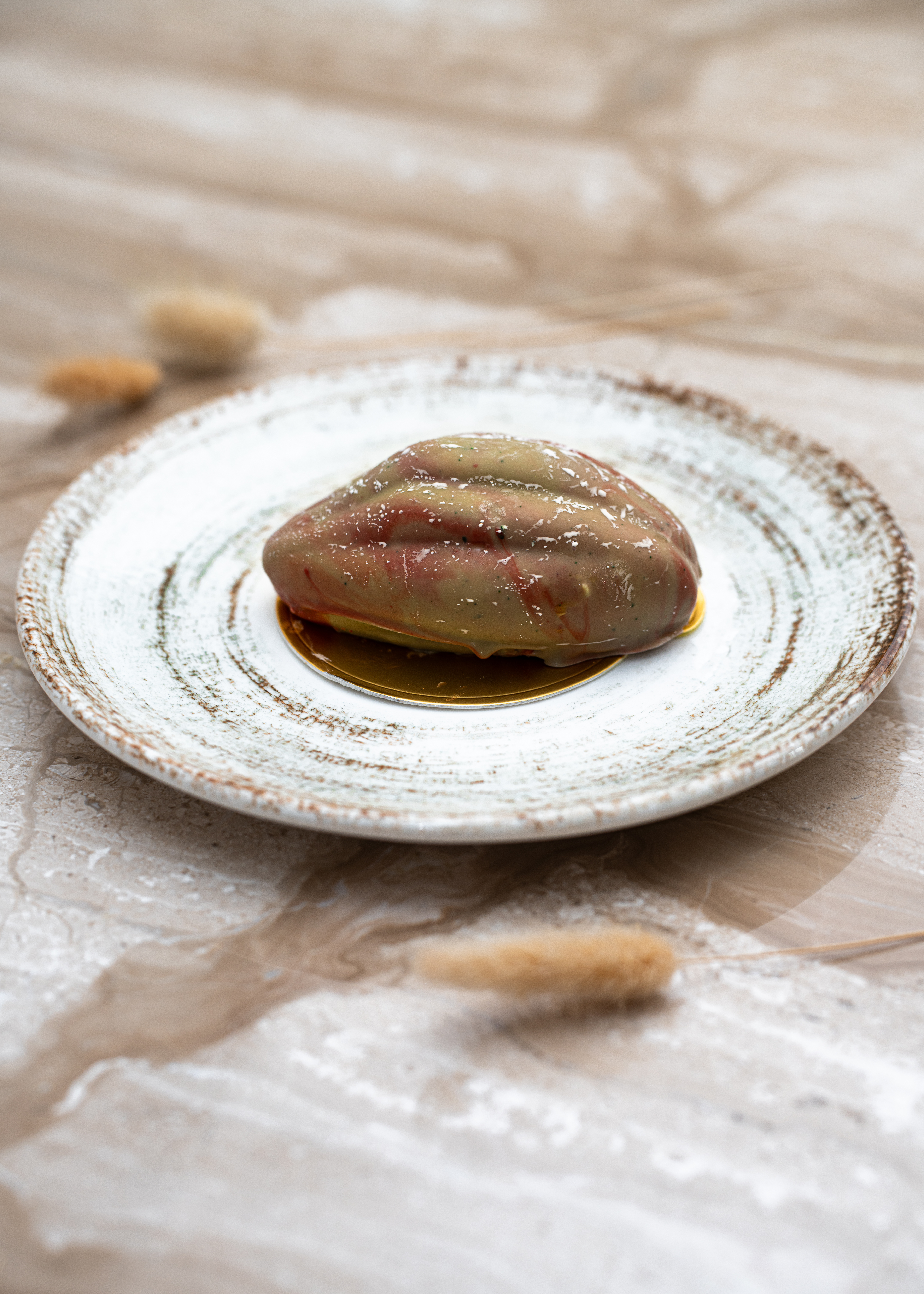 Succombez à la magie de ce trompe-l’œil où le visuel rencontre l’excellence gustative. Sous une coque délicate, découvrez un cœur fondant à la pâte de pistache pure, sublimé par le croquant d’une feuillantine à la fleur de sel. Une pointe de citron frais vient réveiller l’intensité de la pistache pour un équilibre parfait entre audace et gourmandise.